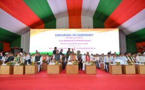 Kokrajhar, October 5: The Swearing-in Ceremony of the 5th Executive Council of the Bodoland Territorial Council (BTC) was held today at the BTC Secretariat Field, Bodofa Nwgwr, Kokrajhar. Assam Chief Secretary Dr. Ravi Kota administered the oath of office, affirmation, and secrecy in the presence of Governor of Assam, Lakshman Prasad Acharya, and Chief Minister of Assam, Dr. Himanta Biswa Sarma.